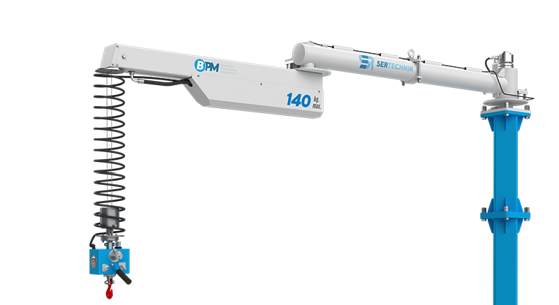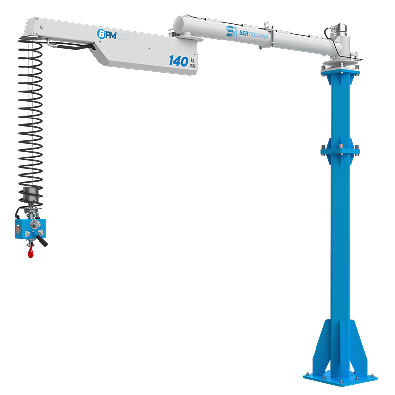 The Transporter Pneumatic Manipulator is ergonomically and efficiently designed to ensure operators can transport loads with maximum safety and speed while using minimal effort. Its dual-rope balancing mechanism, pneumatically controlled lifting system, and precision motion rotating joint structure provide safe and precise handling. By balancing the weight of the load, it allows operators to perform the task effortlessly. With various attachments and project solutions that can be integrated into the front of the manipulator, it is adaptable to a wide range of applications using vacuum, gripper, magnetic, and custom-designed handling systems.